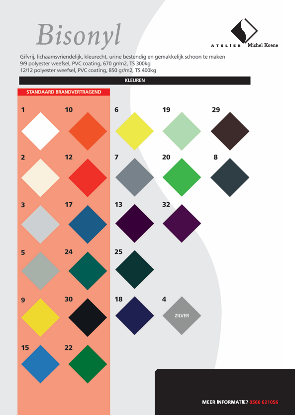 Kies een kleur voor de boven en onderzijde, nummering komt overeen met de bijgevoegde kleurenkaart.